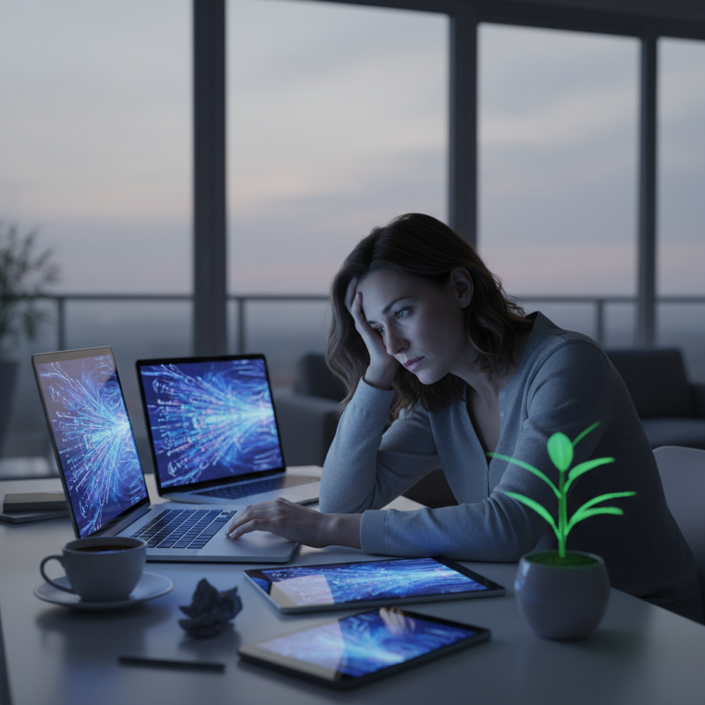 Conceptul de „AI Burnout” depășește simpla oboseală legată de utilizarea excesivă a smartphone-ului. El reflectă o stare de epuizare mentală, emoțională și fizică cauzată de adaptarea continuă la sistemele AI și la cerințele unui mediu digital accelerat. Articolele de specialitate din martie 2026 subliniază că bunăstarea digitală nu mai este doar despre „folosirea mai puțin a telefonului”, ci despre o abordare holistică ce include sănătatea fizică, gestionarea sarcinii cognitive și confidențialitatea digitală. În prezent, un profesionist petrece, în medie, peste 11 ore pe zi interacționând cu ecrane, iar fragmentarea atenției, cauzată de notificările constante alimentate de AI și de cultura „always-on” (întotdeauna disponibil), face ca o persoană să schimbe sarcini la fiecare 47 de secunde. Această fragmentare are un cost considerabil: este nevoie de aproximativ 23 de minute pentru a te re-concentra pe o sarcină după o distragere digitală.